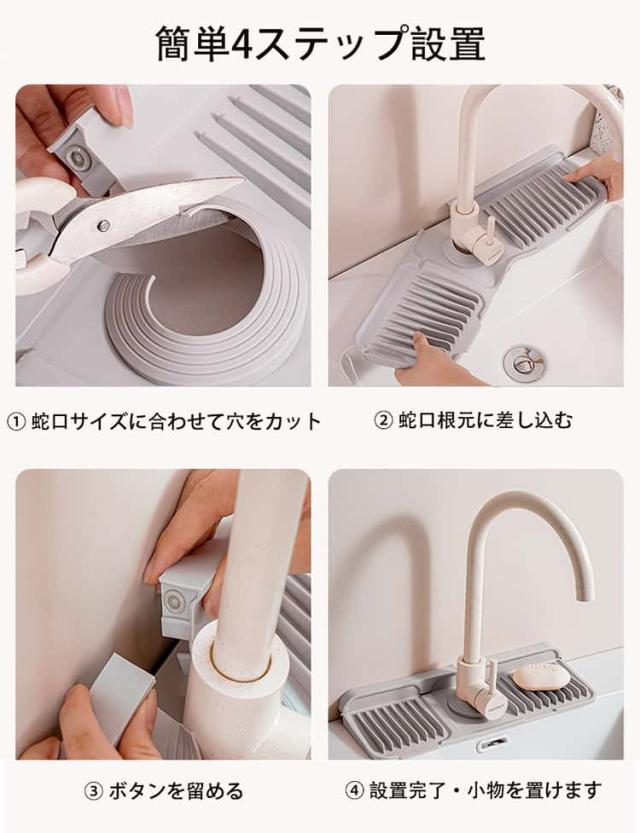 | 蛇口水切りマット 【6°傾斜設計・素早く排水】 わずか6度の傾斜をつけることで水が自然にシンクへ流れる構造。 【ボタン固定・死角なし防漏】 スナップボタンでしっかり固定し、隙間からの水漏れ防止 蛇口根元にぴったりフィット。 【滑り止め・高耐荷重設計】 変形しにくく、小物置きとしても安心。 【折りたたみ式・自由カット】 対応蛇口径:4〜7cm 設置場所に合わせて簡単調整。 | |