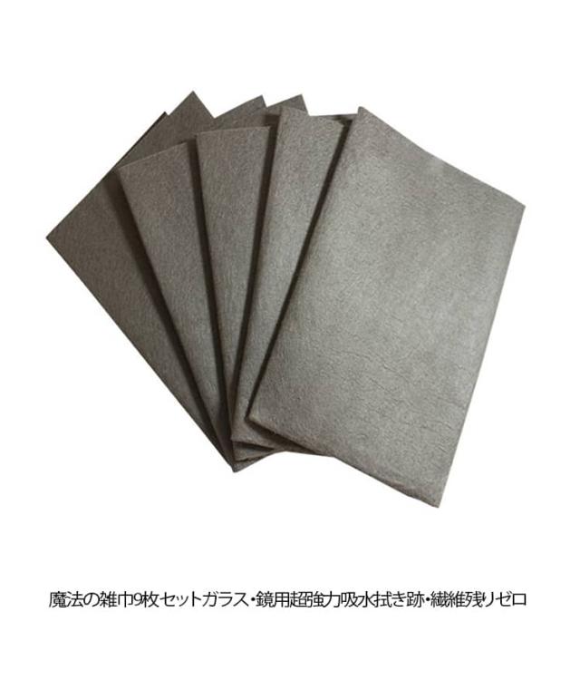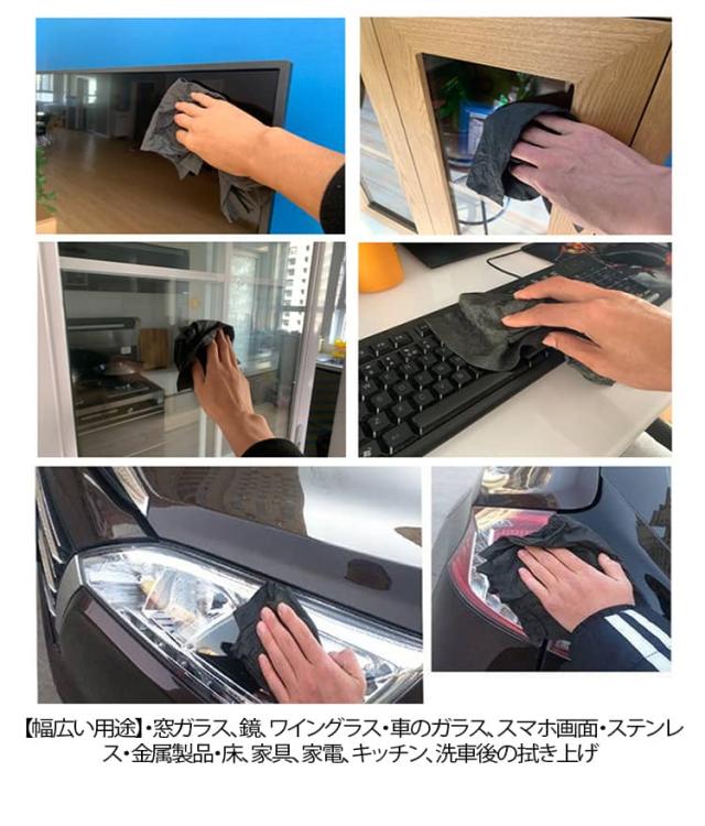 | 魔法の雑巾 9枚セット ガラス・鏡用 超強力吸水 拭き跡・繊維残りゼロ 【万能マジッククロス】 ガラスや鏡の拭き取りに特化した高性能クリーニングクロス。 拭き跡や水垢が残りにくく、乾きも早いので、ピカッとクリアな仕上がりに。 【超微細マイクロファイバー】 ナノよりも細かい繊維構造の高品質マイクロファイバーを採用。毛羽立ち・毛抜けが少なく、やさしい肌触りながら自重の約7倍の吸水力を発揮します。 【洗って繰り返し使える】 無臭・再利用可能で経済的。洗濯機での洗浄もOKです。 【使い方簡単】 水に濡らして固く絞り、拭くだけでOK。洗剤不要です。※乾拭きはせず、必ず水拭きでご使用ください。 頑固な油汚れがある場合は、先に洗剤で汚れを落としてから本品で仕上げ拭きをしてください。 【幅広い用途】 ・窓ガラス、鏡、ワイングラス ・車のガラス、スマホ画面 ・ステンレス・金属製品 ・床、家具、家電、キッチン、洗車後の拭き上げ | |