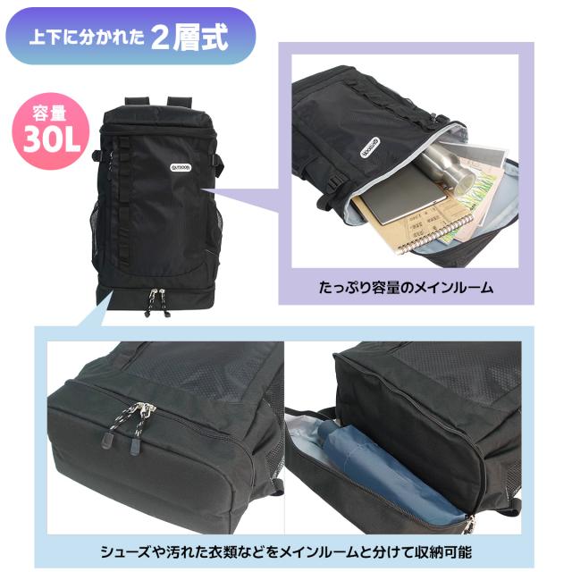アウトドアプロダクツ 22469164 リュック OUTDOOR PRODUCTS デイパック ハニカムリップ 2層式 2ルーム メンズ レディース A4収納 PC収納 通勤 通学 30L