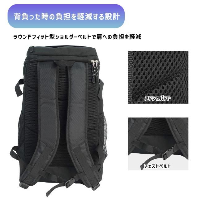 ショルダーベルトは肩への負担を軽減するラウンドフィット型で、ズレを防ぐチェストベルト付き。 カラーはブラック、ネイビーの2色展開で通勤、通学からアウトドアシーンまで幅広いシーンで活躍するアイテムです。