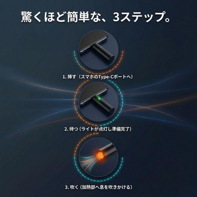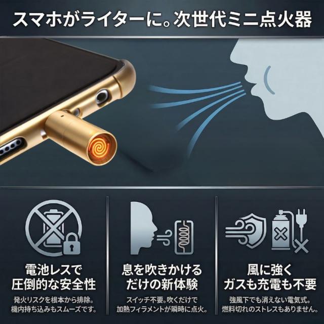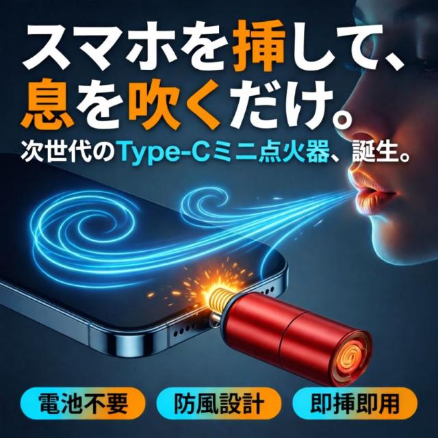 スマホを挿して、息を吹く。それだけで火が灯る「Type-C ミニ点火器」