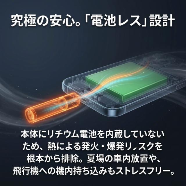 「電池レス」がもたらす圧倒的な安全性と安心感