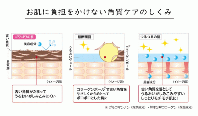 このコラーゲンボール ※ が古い角質をやさしくからめ取り、同時にコラーゲンがお肌をケアするので、お肌への負担が少なく、ピーリング効果をご実感いただけます。