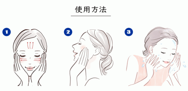 | 使用方法 | 手のひらに2〜3プッシュを目安にとり、顔全体にのばして、ポロポロがでてくるまでやさしくマッサージしてください。 その後、水またはぬるま湯でていねいに洗い流してください。 ※目の周りなど皮膚の薄い部分は避け、こすりすぎないよう、やさしくなじませるようにご使用ください。 ※お肌が特に濡れているときは、軽く水気を取ってからお使いください。 |