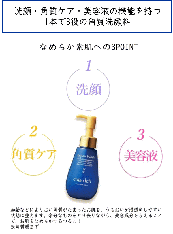 ひとつで3つの機能「洗顔」「角質ケア」「美容液」。