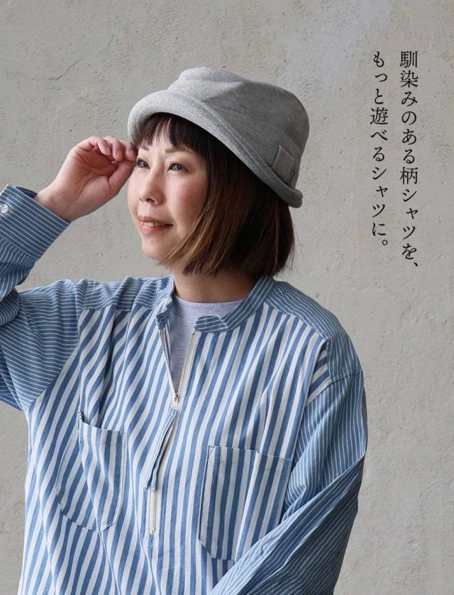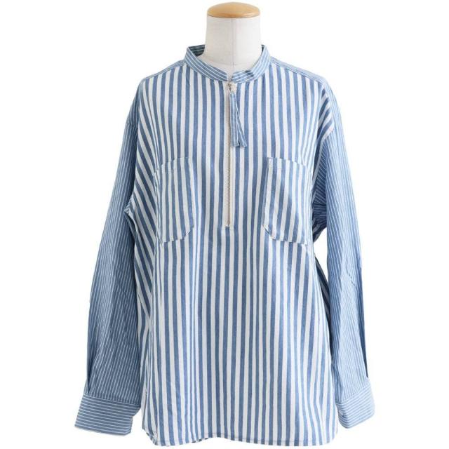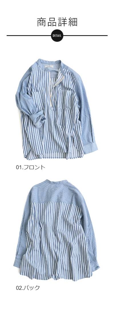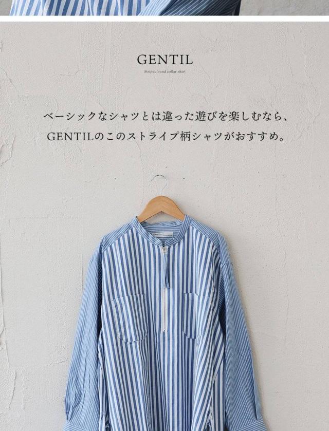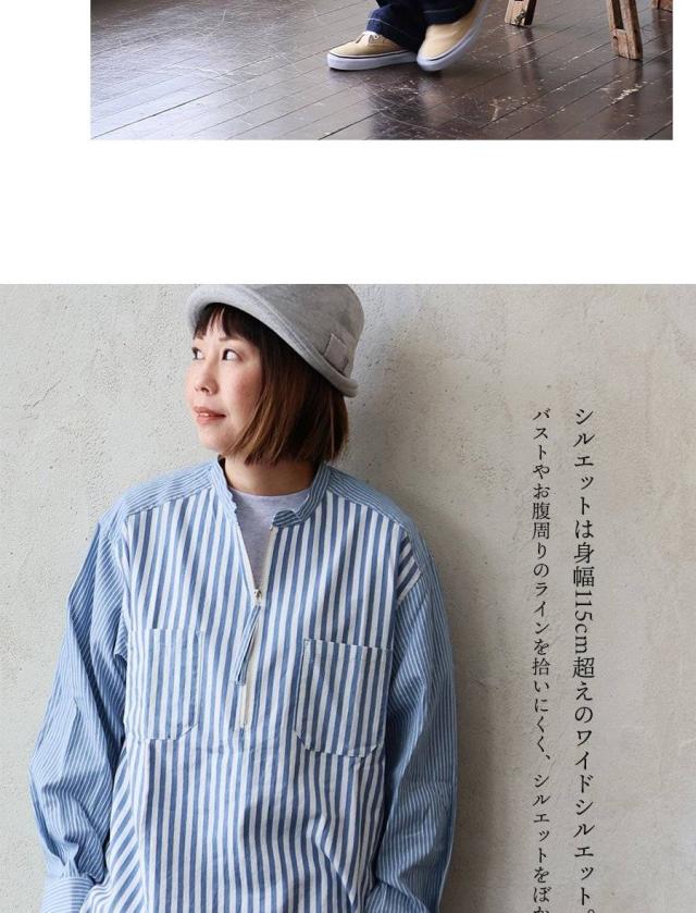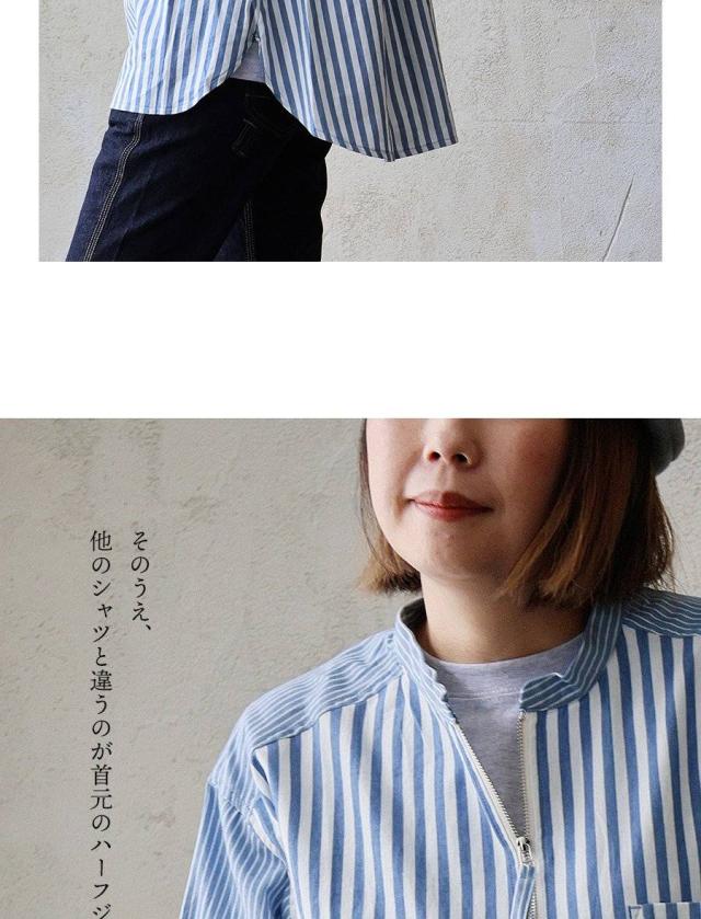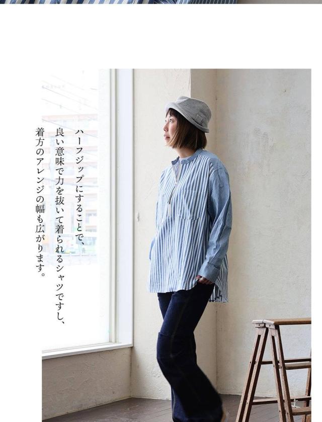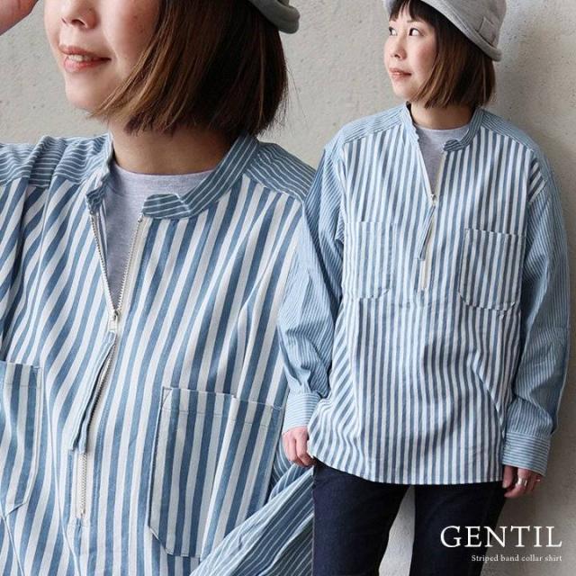 シャツ 長袖 レディース ハーフジップ ストライプ 配色 綿100 コットン 薄手 軽い 通気性 ゆったり 体型カバー すっきり カジュアル パティ GENTIL ジャンティ