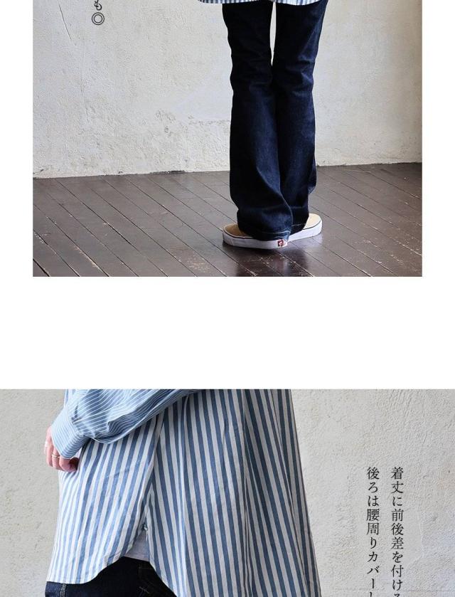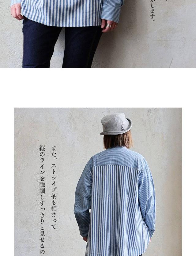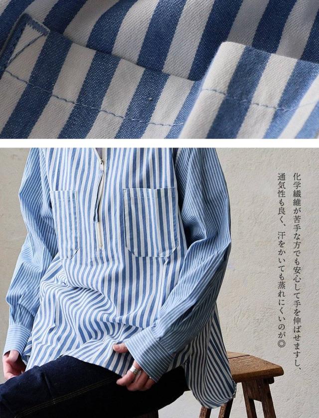 シャツ 長袖 レディース ハーフジップ ストライプ 配色 綿100 コットン 薄手 軽い 通気性 ゆったり 体型カバー すっきり カジュアル パティ