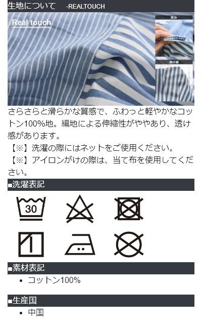 ・生地はさらさらと引っ掛かりがなく、優しい肌あたりのコットン100%地。