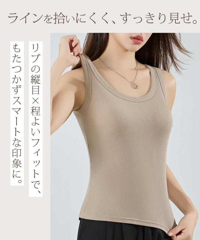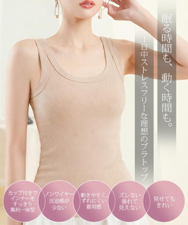 33%OFFクーポン!ブラトップ キャミソール タンクトップ カップ付きインナー リブフィットタンク リブフィットキャミソール 下着 ノンワイヤー 伸縮性 部屋着 春 夏 秋 冬 30代 40代 50代