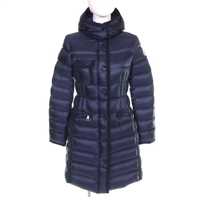 美品△MONCLER モンクレール HERMINE エルミンヌ ロゴワッペン・フード付 ダウンコート 美シルエット ネイビー 00 正規品 レディース