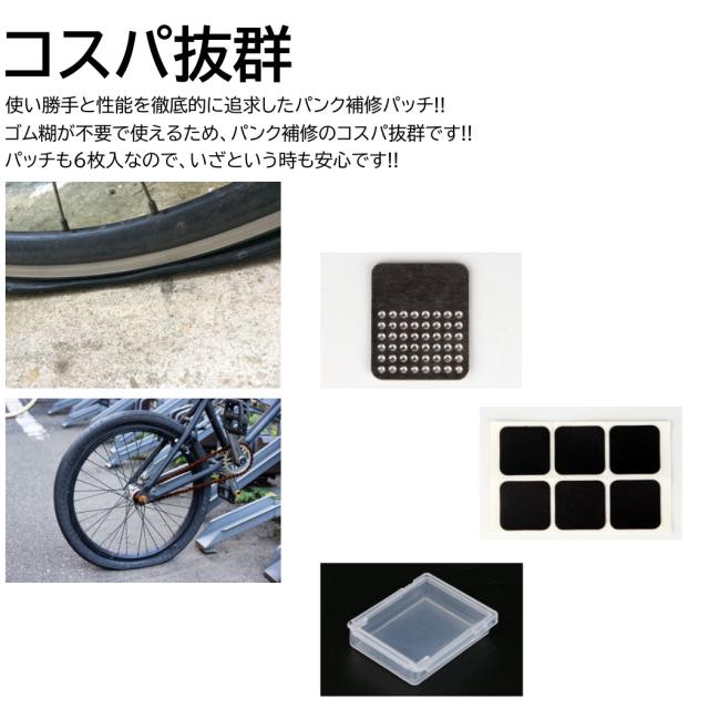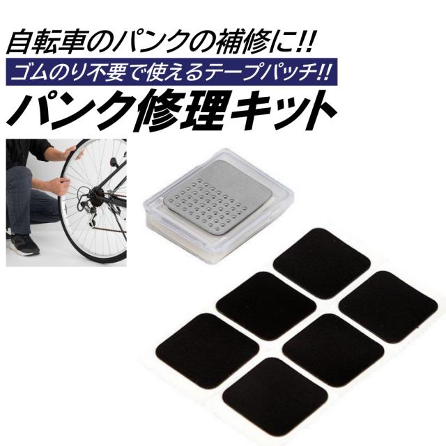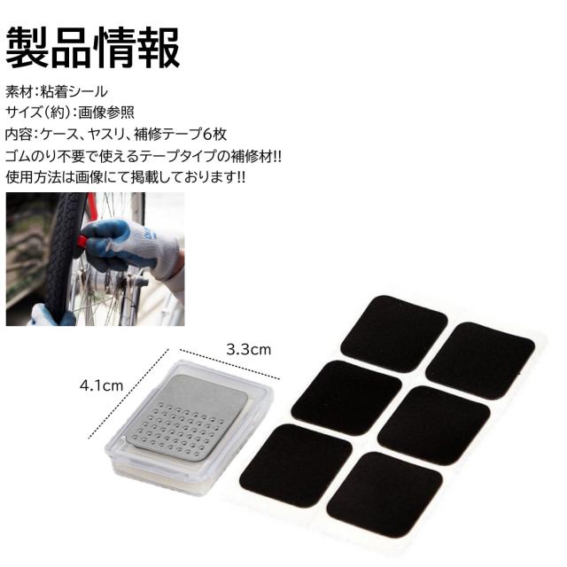 ゴムパッチ 自転車 パンク修理 6枚入 やすり付き ケース付き のり無しで使える 両面テープ 消耗 予備 パンク修理パッチ 伸縮 補修
