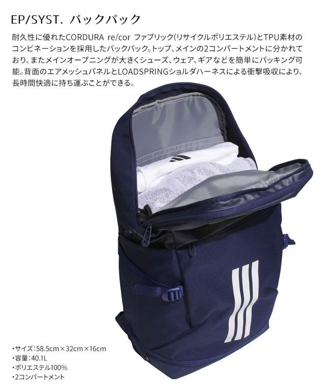 アディダス EP/Syst. バックパック 40L リュック ユニセックス 大容量 通勤 通学 部活 遠征 合宿 A4対応 PC収納 スポーツ トレーニング デイリー 丈夫 軽量 撥水仕様 人気 シンプル 黒 ブラック adidas HQ270