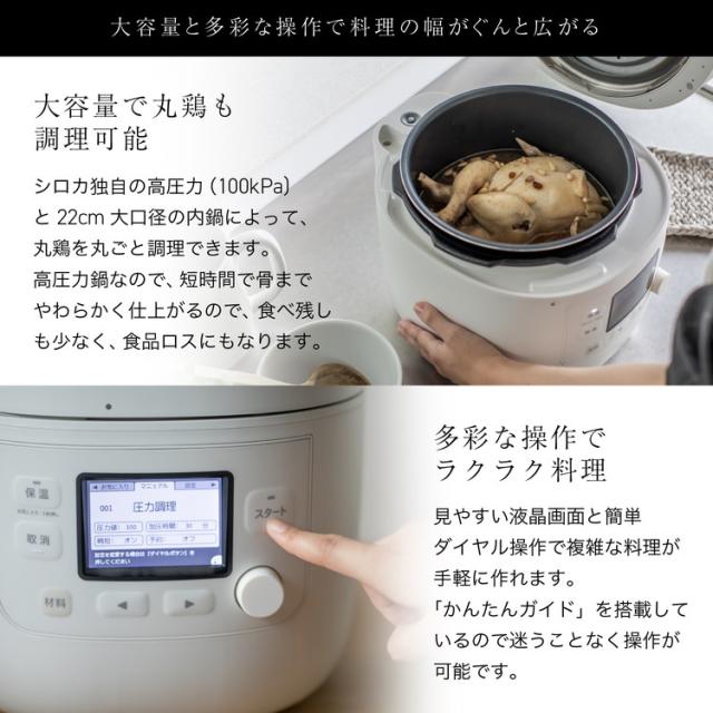 siroca シロカ 電気圧力鍋 5L おうちシェフ PRO L 4~6人用 1台12役 オートメニュー100種 自動調理 時短 予約 炊飯 タイマー 自動減圧 無水調理 蒸し 低温 発酵 煮物 煮込み 保温 レシピ付 SP-5D151【送料無料】
