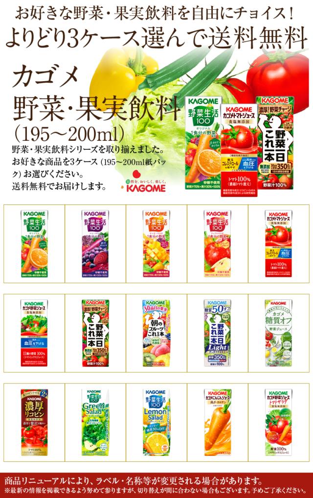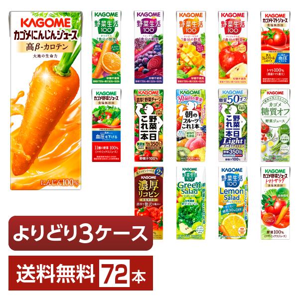 選べる カゴメ 野菜 果実飲料 よりどりMIX 195〜200ml 紙パック 72本 (24本×3箱) よりどり3ケース 送料無料