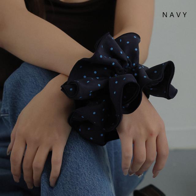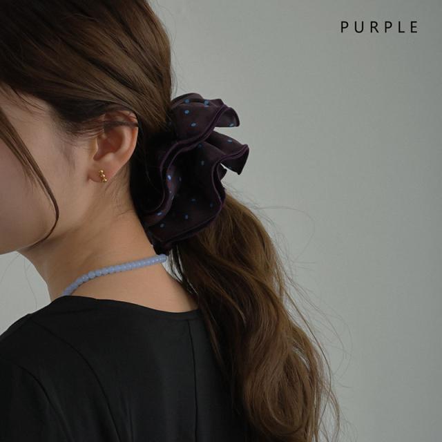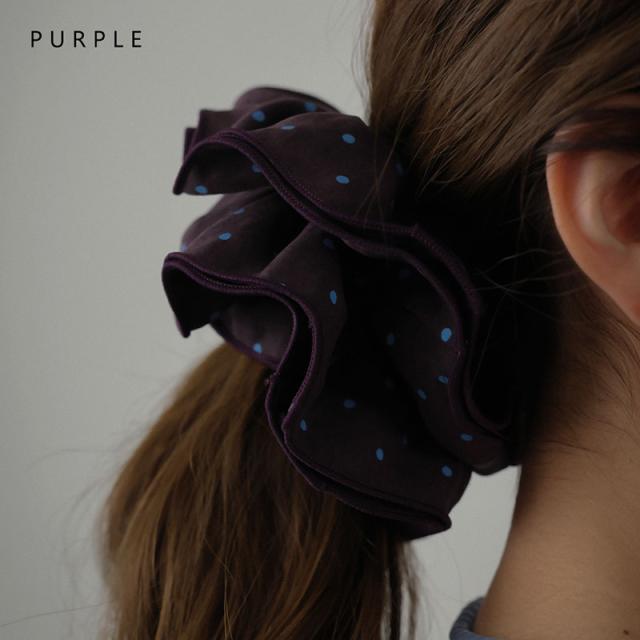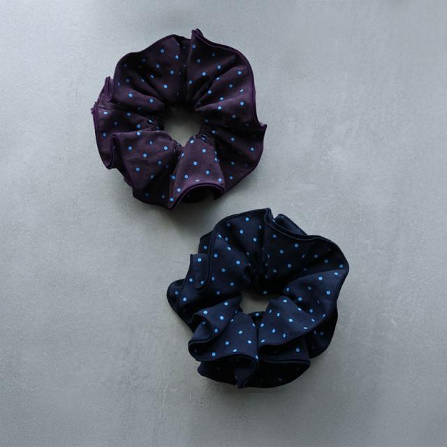 シュシュ ヘアゴム ヘアアクセサリー ドット 水玉 パイピング 縁取り 大きめ 大きい ビッグ 大人っぽい おしゃれ レディース ネイビー パープル 紫 まとめ髪 ヘアアレンジ シンプル 普段使い