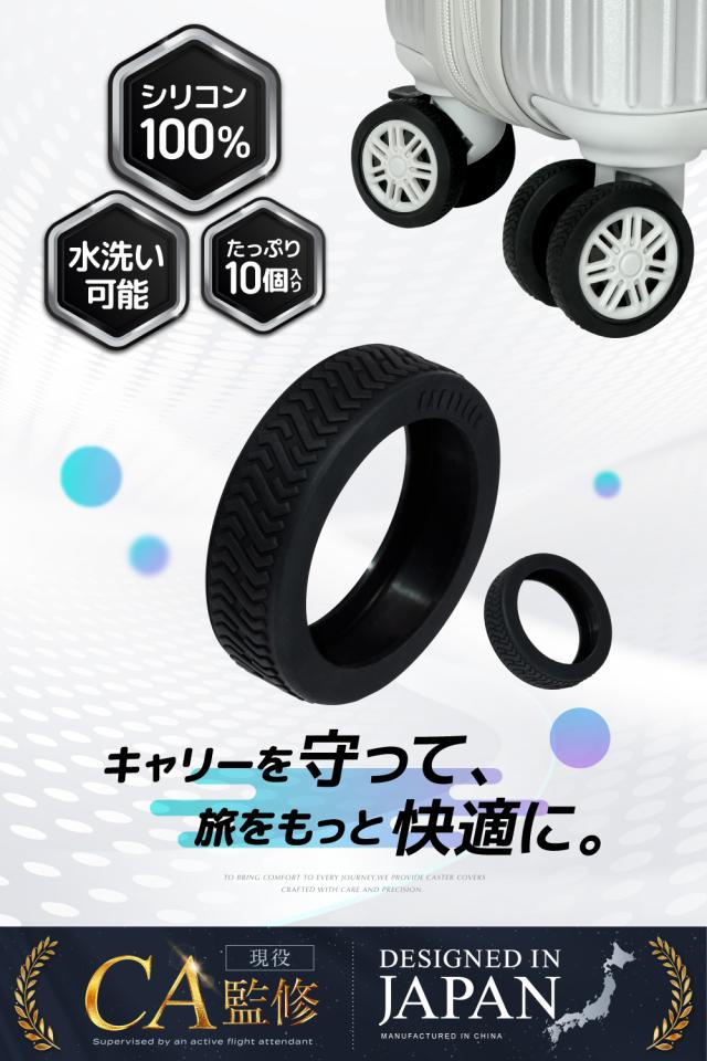 (現役客室乗務員監修) キャスターカバー 日本企業企画 10個セット 直径5.5cm シリコン100% スーツケース タイヤカバー キャリーケース 車輪カバー 騒音低減 送料無料 EXCITECH ギフト プレゼント