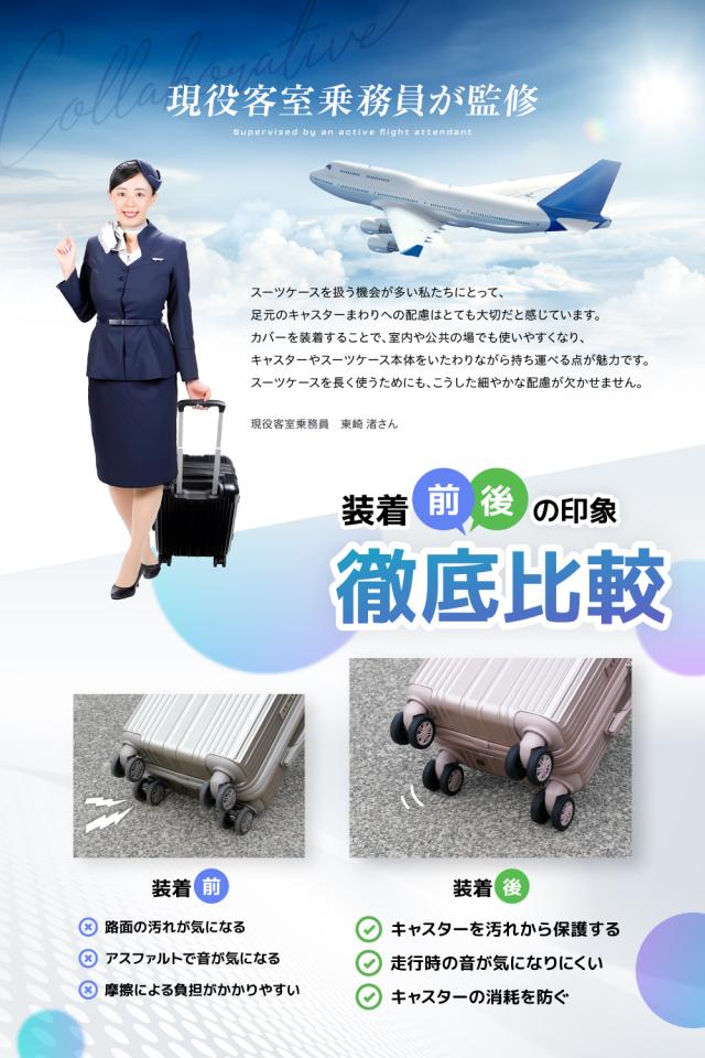 現役客室乗務員監修 × 日本企業設計のキャスターカバー。