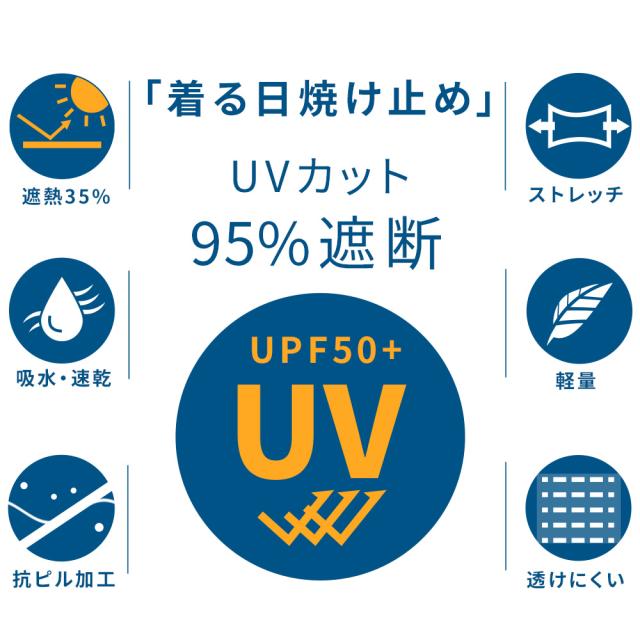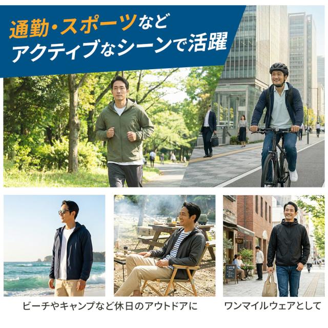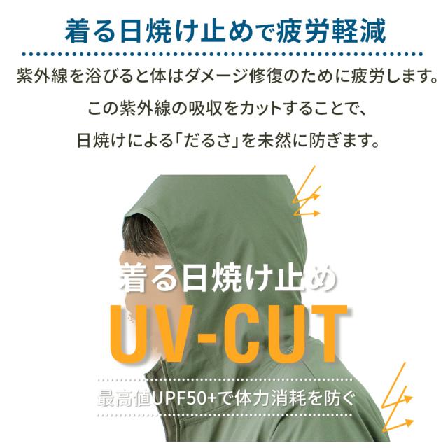 アトリエ365のUVカットパーカーは、ポリエステル100%の軽量素材で動きやすく、ストレスフリーな着心地が魅力。UVカット率95%・UPF50+で強い日差しから肌をしっかり守り、遮熱効果で暑い季節も快適に過ごせます。