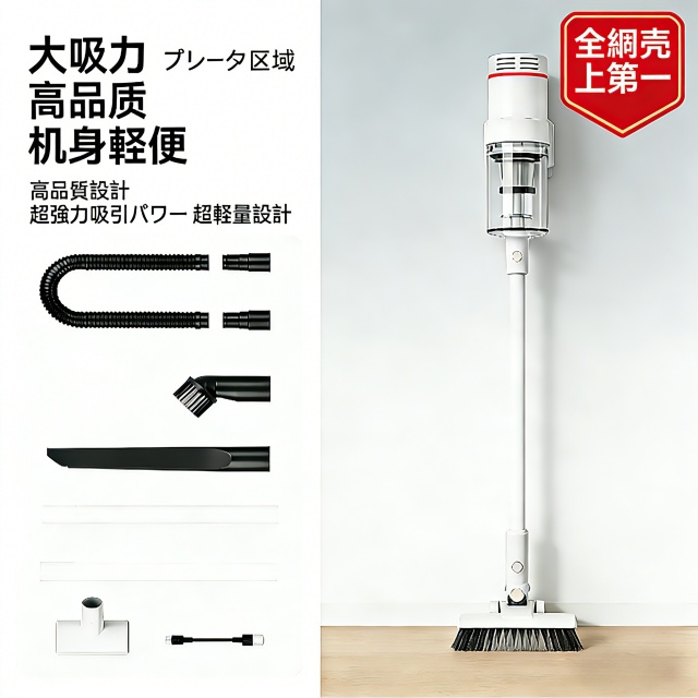 【2026 年新型】高品質 掃除機 スティック型 ハンディ 19000Pa 強力吸引 5 種類ノズル付き LED ライト搭載 超軽量ボディ Type-C 充電式 最大 35 分連続稼働 HEPA 多層フィルター 家庭用 車用 一人暮らしに最適