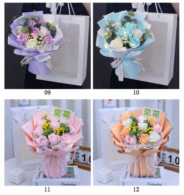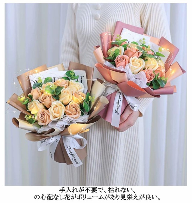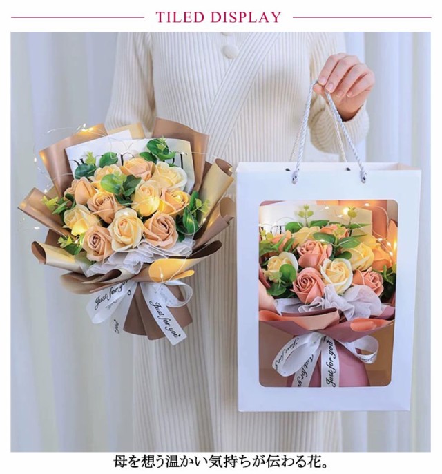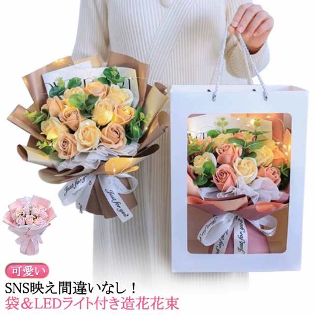 ソープフラワー 花束 ギフト ソープフラワー LEDライト付き 開店祝い 発表会 バラ 薔薇 ブーケ 造花 祖母 光る 石けん花 母の日 母親 お見舞い ドライフラワー ギフト 記念日 退職祝い 石鹸花 プレゼント 贈り物 枯れない花 合格祝い 卒園 入学 卒業式 就職 送別会