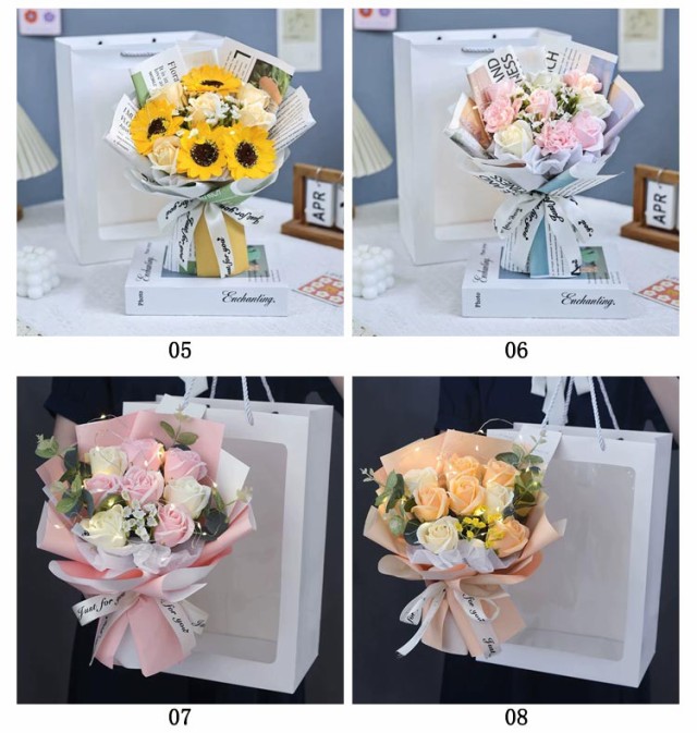 | SNS映え間違いなし!袋&LEDライト付き造花花束。 母を想う温かい気持ちが伝わる花。 手入れが不要で、枯れない、の心配なし花がボリュームがあり見栄えが良い。 存在感抜群のLEDライト付き、美しくより華やかに雰囲気を演出してくれます。 母の日や敬老の日はもちろん、結婚祝いや、 出産、誕生などの記念日にも大活躍のプレゼント。 | |