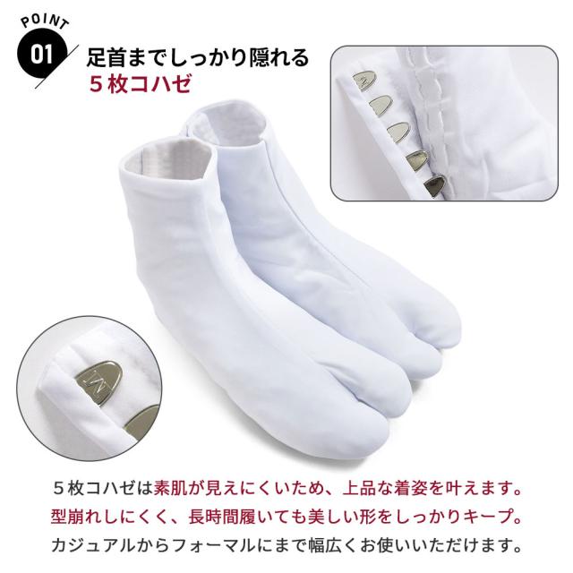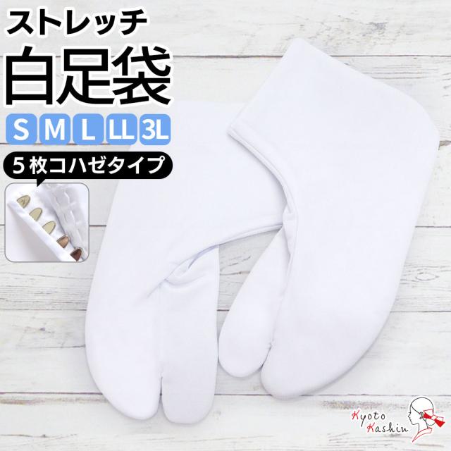 【メール便送料無料】ストレッチ足袋 5枚こはぜ 伸縮自在 足袋 白 ストレッチ ノーアイロン 白足袋 足が痛くなりにくい シワになりにくい 甲高 幅広 / 着物 和装 通年用 カジュアル フォーマル / S M L LL 3L