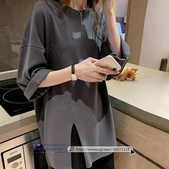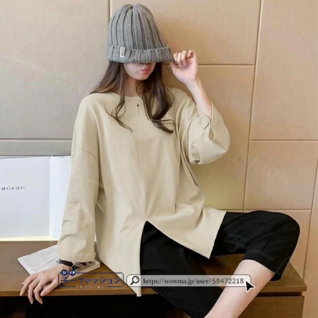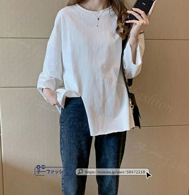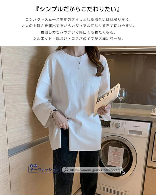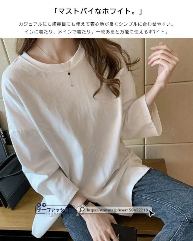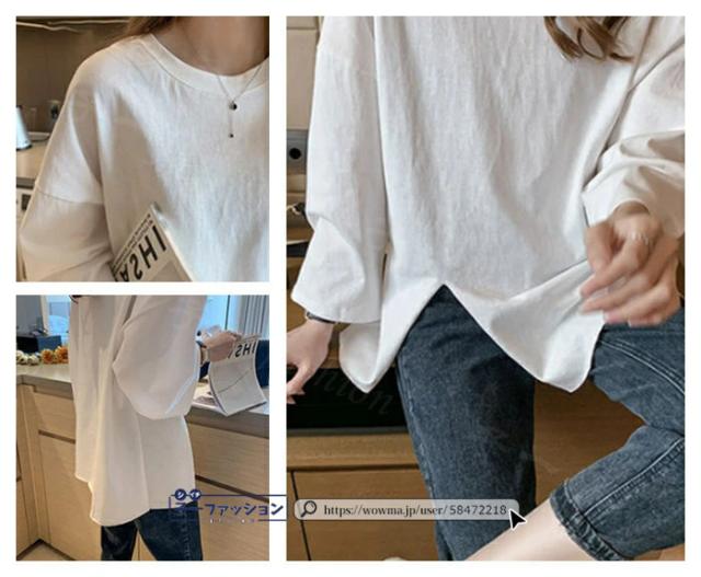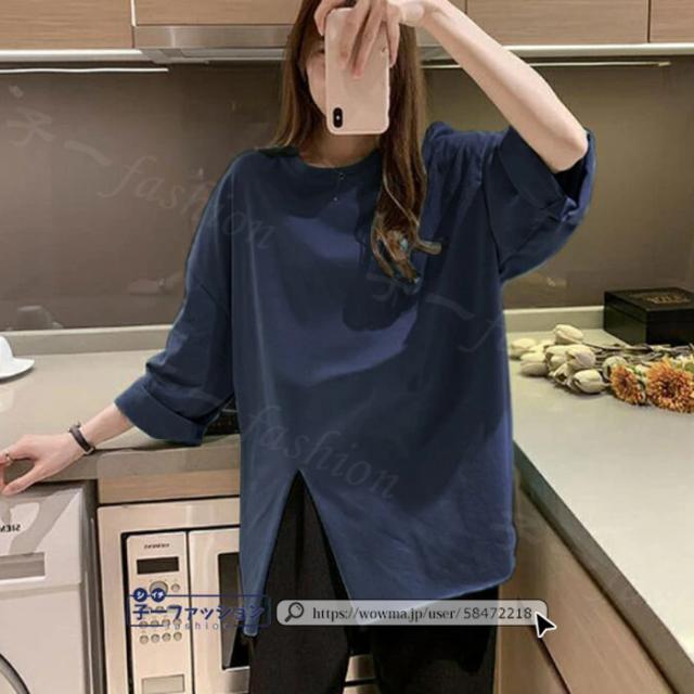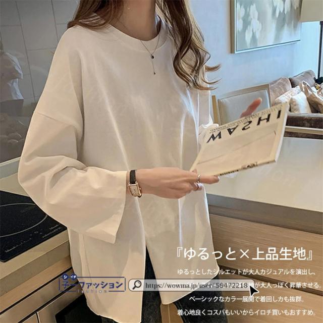 <1点あたり1,350円!2点同時購入&クーポン利用で>ロンT Tシャツ 綿100% 長袖 七分袖 tシャツ スリット 重ね着 薄手 トップス レディース 春新作 送料無料 ゆったり ラウンドネック カットソー 無地 インナー シンプル お尻が隠れる 女性 春服