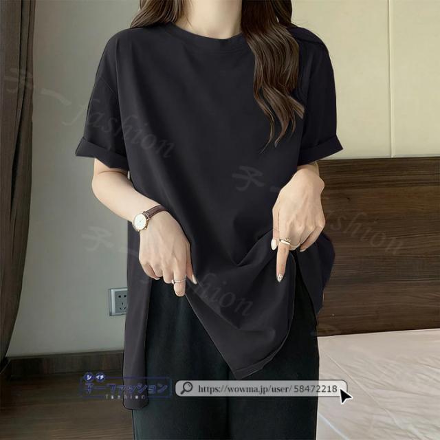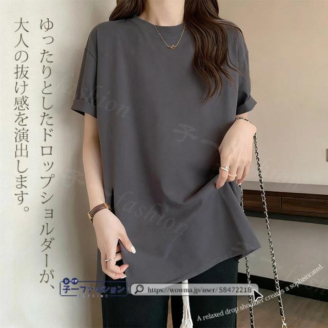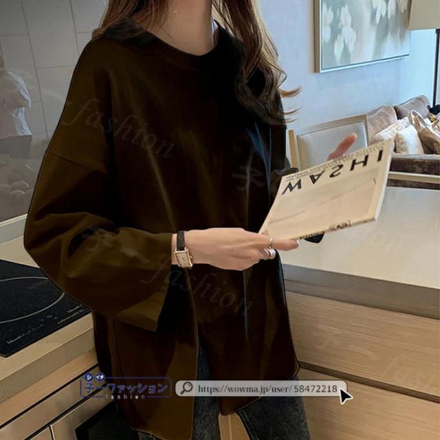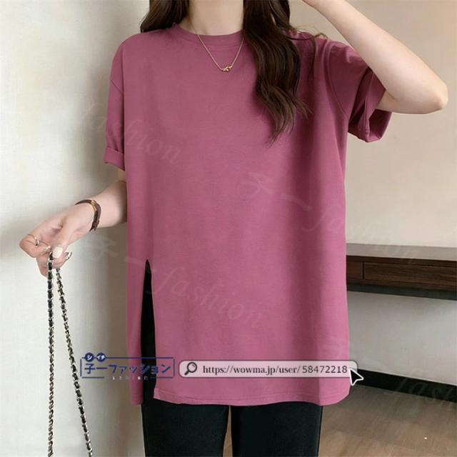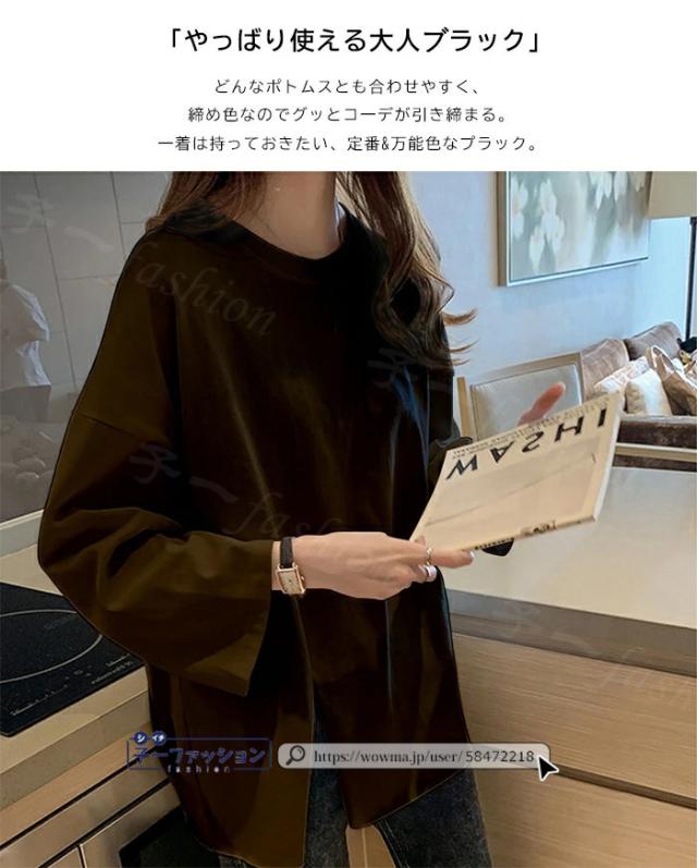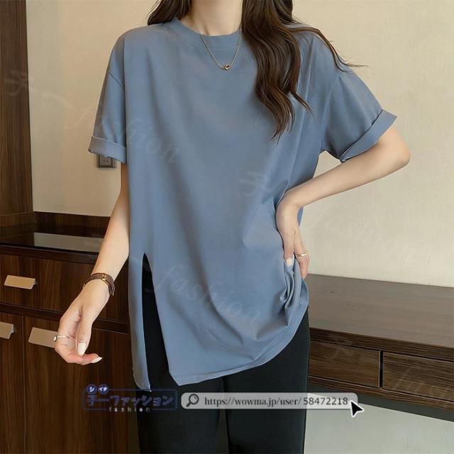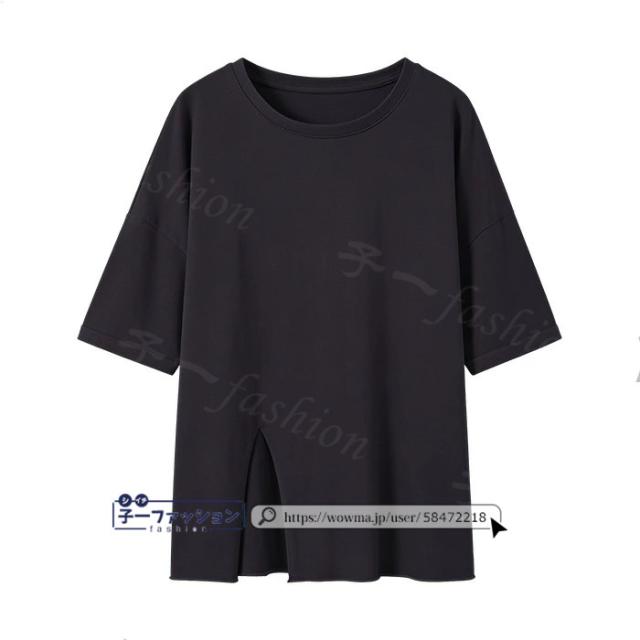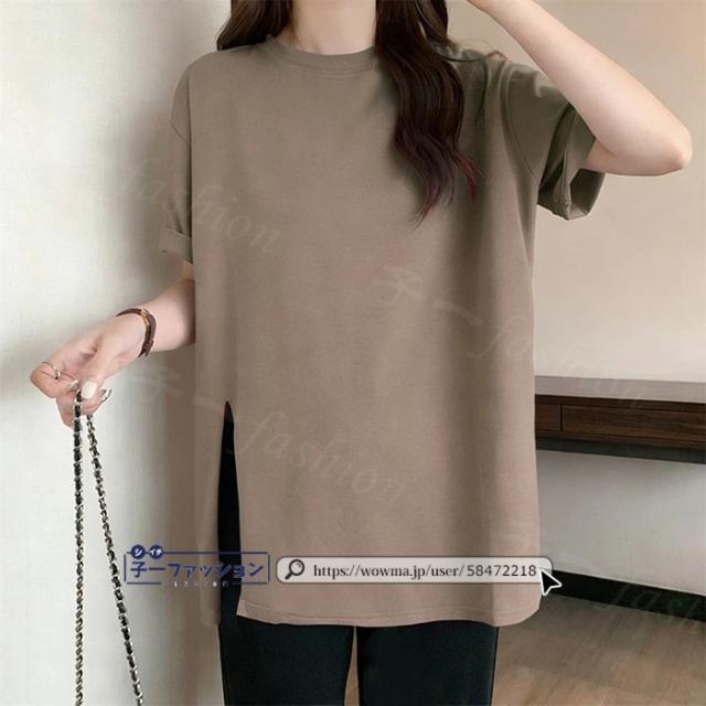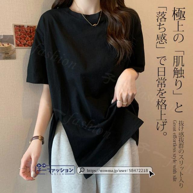 <1点あたり1,350円!2点同時購入&クーポン利用で>ロンT Tシャツ 綿100% 長袖 七分袖 tシャツ スリット 重ね着 薄手 トップス レディース 春新作 送料無料 ゆったり ラウンドネック カットソー 無地 インナー シンプル お尻が隠れる 女性 春服