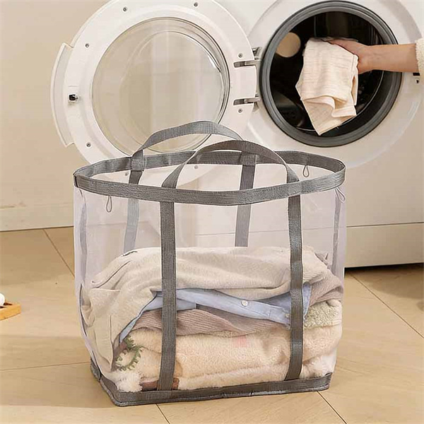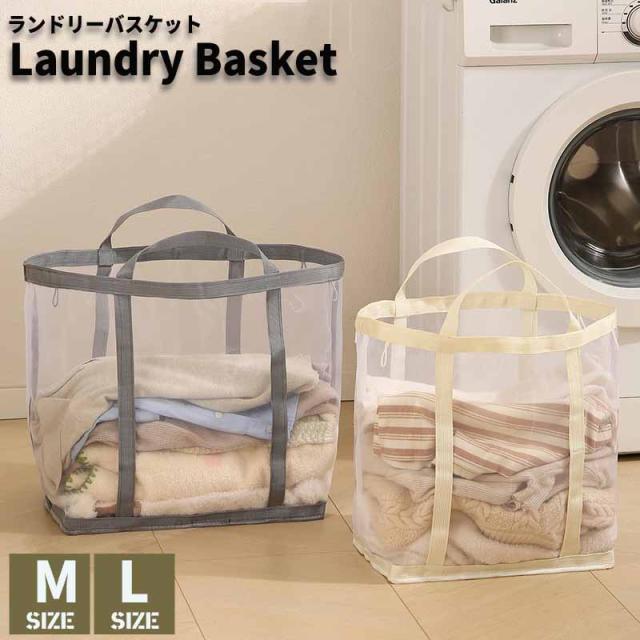 ランドリーバスケット メッシュ 折りたたみ式 通気性 手提げ 洗濯かご おしゃれ 大容量 洗濯物入れ 浴室 脱衣所 収納ボックス 丈夫 軽量 収納ケース 持ち運び シンプル
