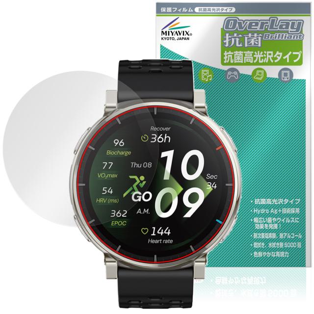 Amazfit Active 3 Premium 保護フィルム OverLay 抗菌 Brilliant for アマズフィット スマートウォッチ Hydro Ag+ 抗菌 抗ウイルス 高光沢