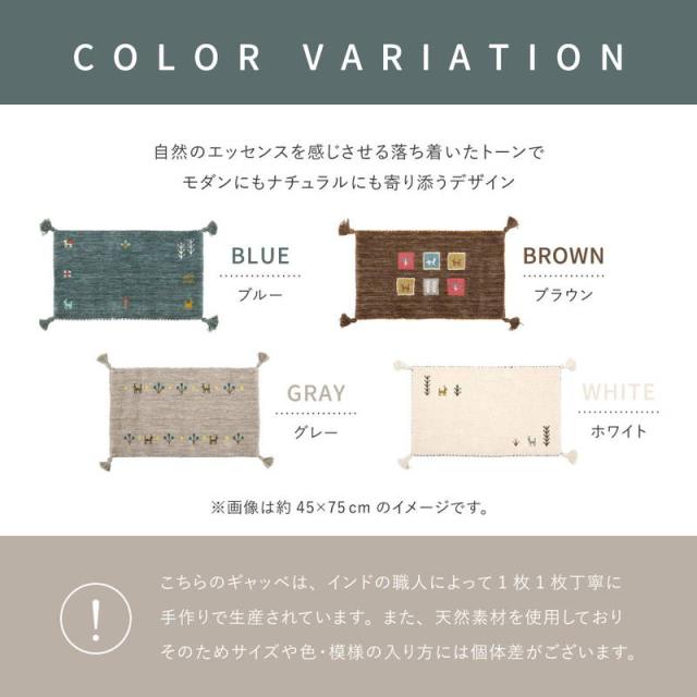 ※こちらのギャッベは、インドの職人によって1枚1枚丁寧に手作りで生産されています。