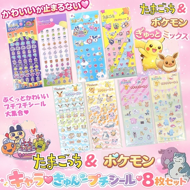 たまごっち&ポケモン キャラ?きゅんプチプチシール8枚セット ぷくぷく 立体 シール 8枚組 かわいい ぷっくり 交換 シール帳 3D 平成