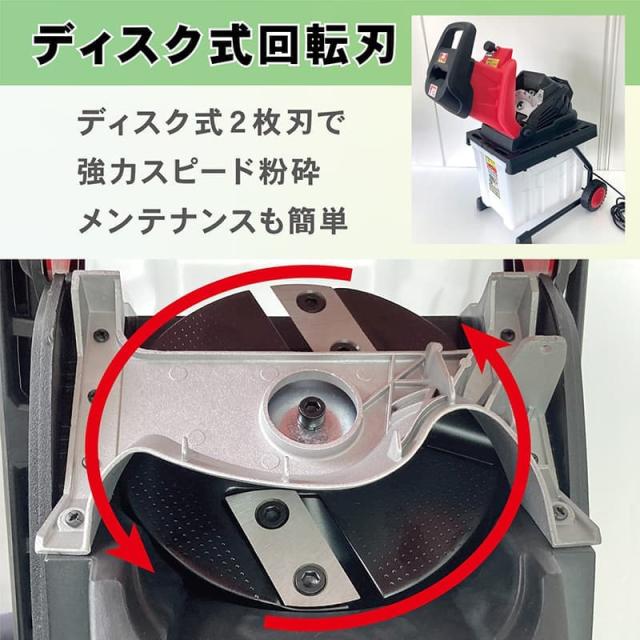 ディスク式2枚刃で強力スピード粉砕。メンテナンスも簡単。