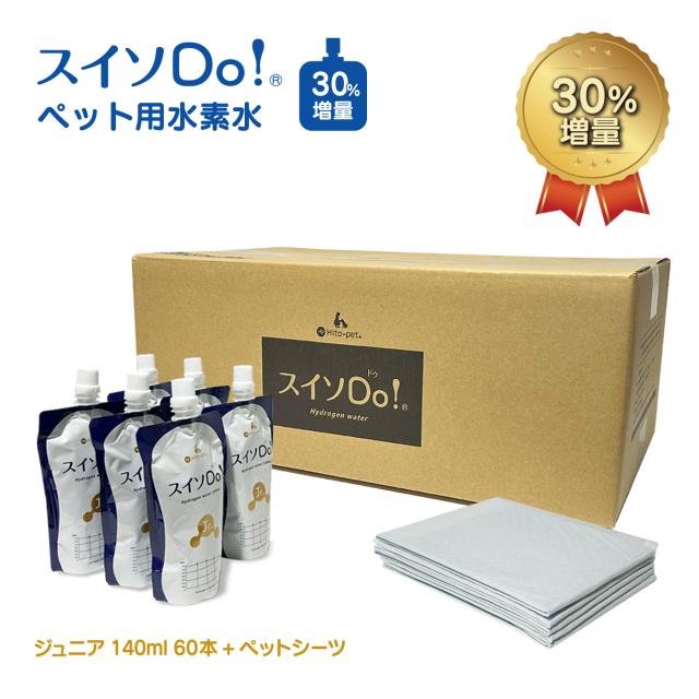 新発売 30%増量!【スイソDo!Jr. ジュニア140ml 60本+ペットシーツ5枚入り】水素水 ペット用 犬用 猫用 人間動物共用 ミネラルゼロ ミネラル成分を調整し尿石の形成を抑制 長期高濃度水素水 hydrogen water