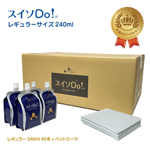 新発売 リニューアル&増量!ペットシーツ5枚入り【スイソDo!レギュラー240ml 40本(+PS)】ペット用水素水 人間共用 ペットウォーター ペットの水素水 ペット水素水 ミネラルゼロ 腎臓ケア 犬 水素水 猫 水素水 ペット水 猫犬水 人用水素水 ペット用飲料水