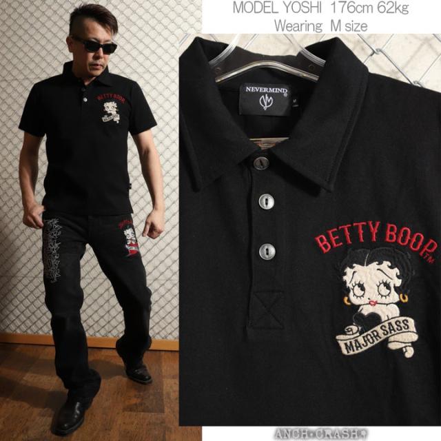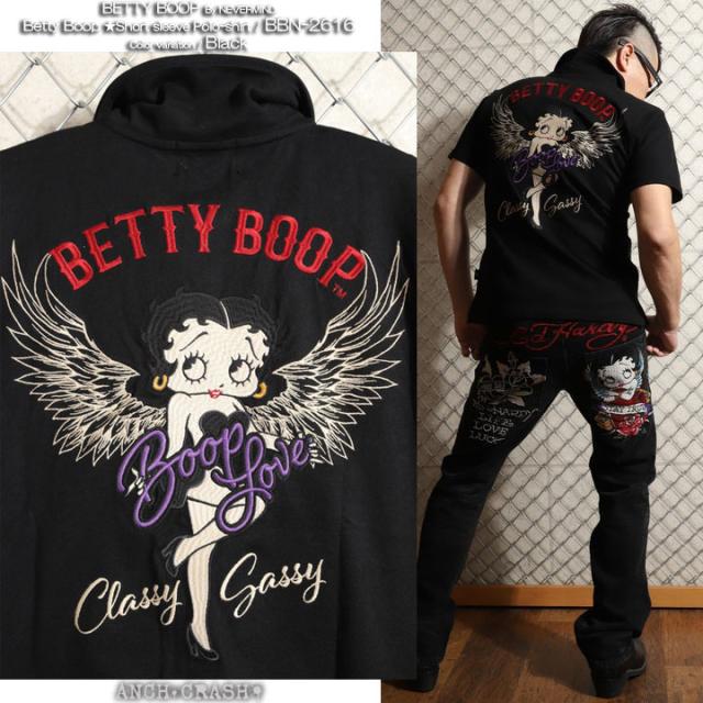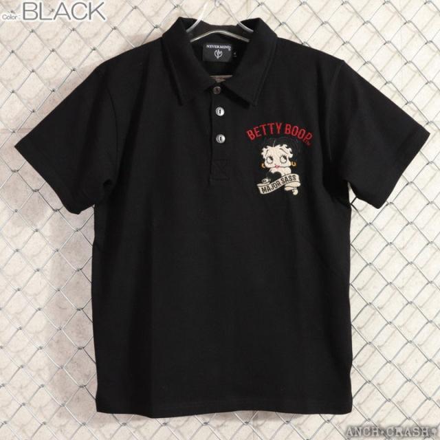 BETTY BOOP 半袖ポロ (BBN-2616) 【送料無料】ベティブープ NEVERMIND 刺繍