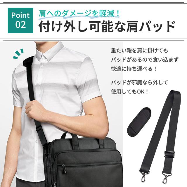3個セット ショルダーストラップ 黒 ブラック バッグ 鞄 ショルダーベルト ベルト ストラップ ストラップのみ シンプル ビジネスバッグ 肩掛け 斜め掛け サラリーマン スーツ 荷物 紐 幅広 メンズ レディース 無地 肩パッド付き パッド ショルダーパッド バッグ用