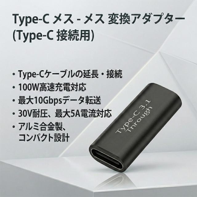・Type-Cケーブルの長さが少し足りない、といった時に便利な中継アダプターです。