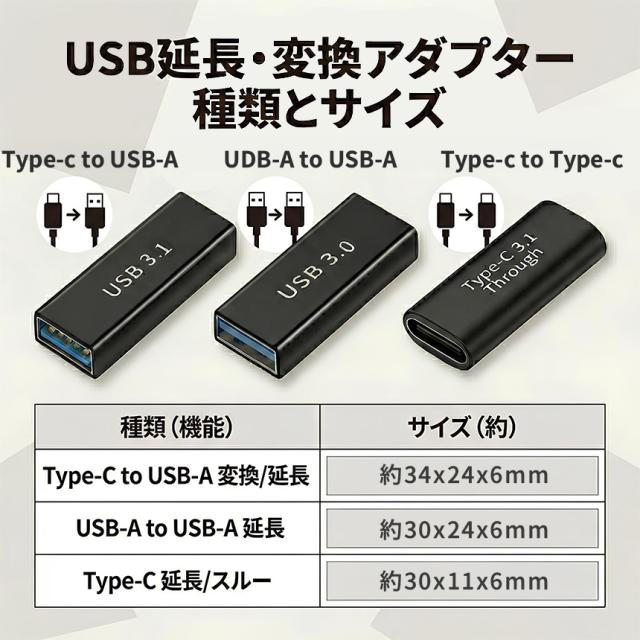 【選べる3種】USB変換・延長アダプター 中継アダプター Type-C/USB-A対応 最大10Gbps高速転送 100W PD充電対応 アルミ合金製 小型 軽量 データ転送 充電 テレワーク 在宅勤務