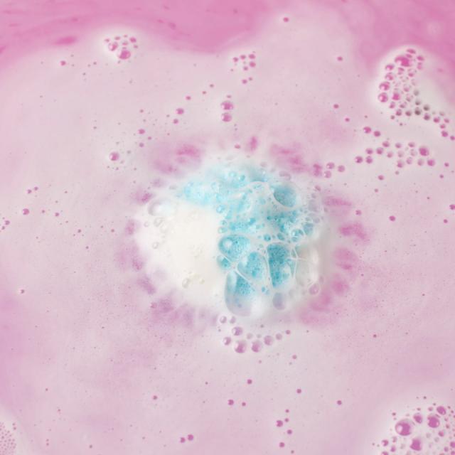 炭酸水素Na、クエン酸、香料、ベルガモット果実油、スイートオレンジ油、ダマスクバラ花エキス、ビターオレンジ花油、ビターオレンジ花エキス、ココイルイセチオン酸Na、PG、水、酸化チタン、赤104(1)、赤218、青1