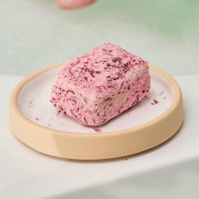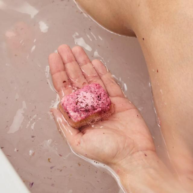 洗浄した後の濡れたお肌に円を描くようになじませ、その後に軽く洗い流します。バスボム(入浴料)と似た成分でコーティングされているので、シュワっと泡立てるために濡らして使ってください。心地良いスクラブ感が古い角質や汚れの除去をサポートし、お肌をしっとり柔らかに!