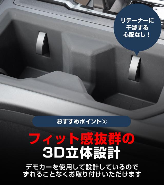 実際の車体を使用して設計しているため、フロントドリンクホルダー周りに違和感なくフィットし、まるで純正品のような自然な仕上がりを実現します。