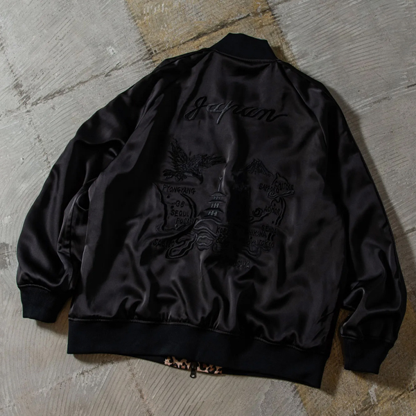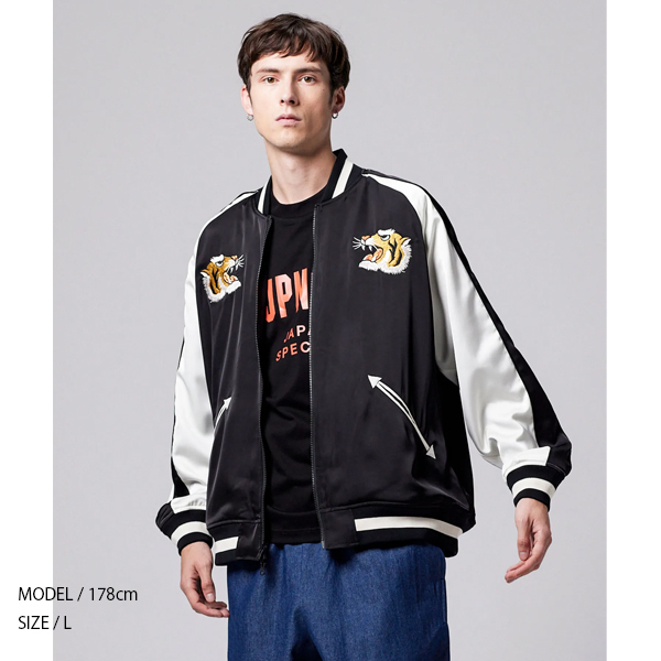 ・レーヨン素材を使用し、表側前後にスカジャン風刺繍を入れています。