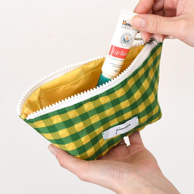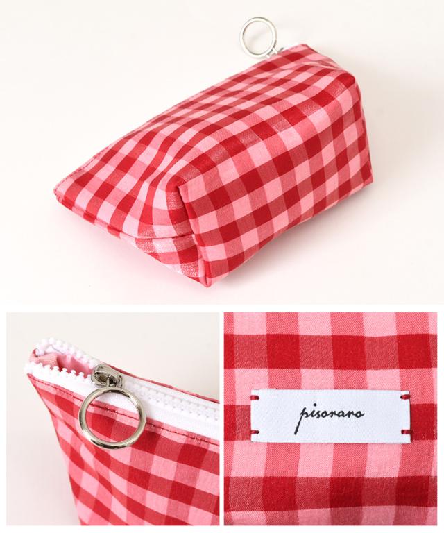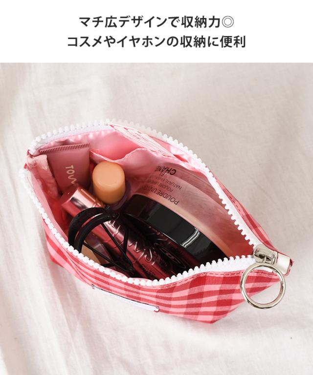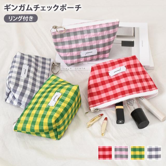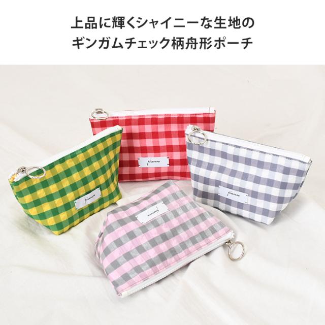新作 リング付き ギンガムチェック 舟形ポーチ レディース ミニポーチ 小物入れ メイクポーチ 化粧ポーチ コスメポーチ おしゃれ かわいい 小さめ 自立 ファスナー マチ付き コンパクト 小物 旅行 デイリー