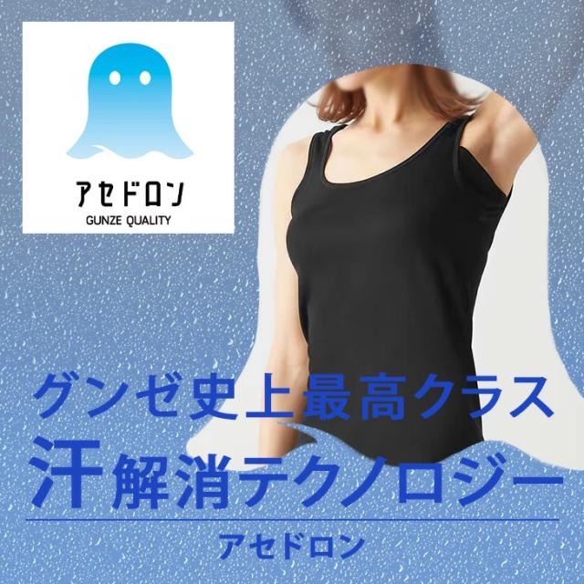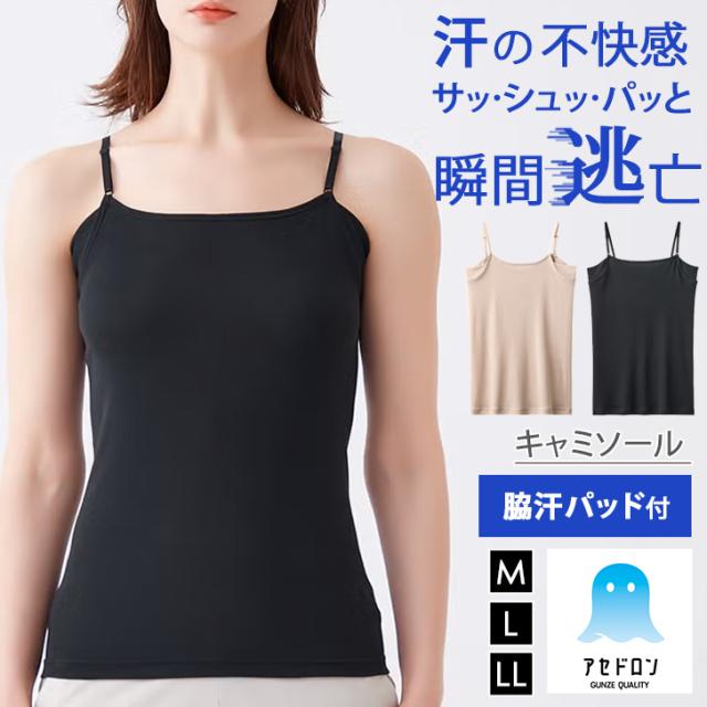 新作 GUNZE アセドロン 吸汗速乾 汗取りパッド付き レディース キャミソール MC0056R インナー 肌着 下着 トップス 抗菌 防臭 汗対策 ドライ 汗染み 脇汗 伸縮性 薄手 夏 カップなし 無地