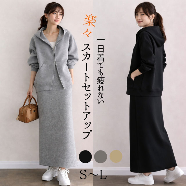HOTワード: スカート セットアップ パーカー レディース 上下セット カジュアル ジップアップパーカー ジャージ ロングスカート ゆったり シンプル 無地 長袖 オフィス ママ お母さん 通勤 女性 トップス 春 秋 冬 送料無料 30代 40代 50代
