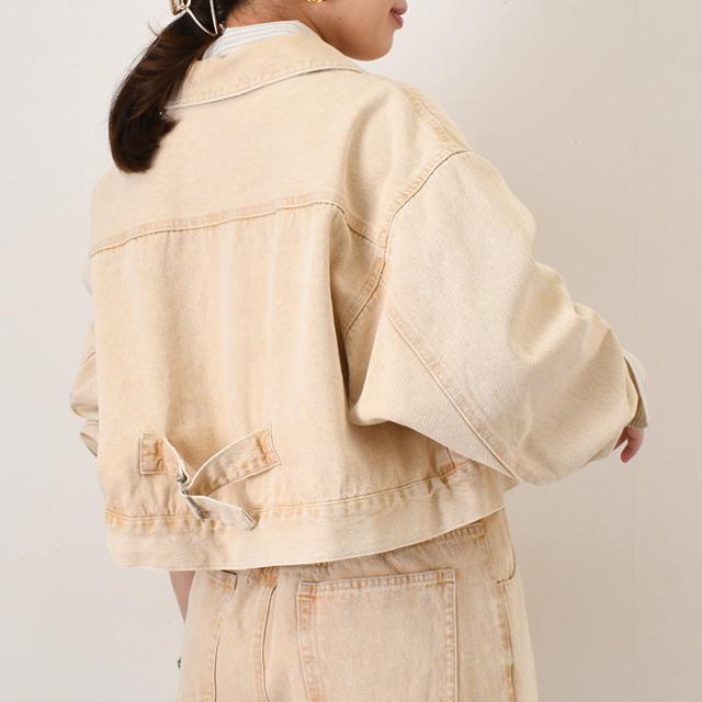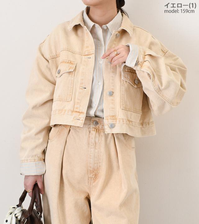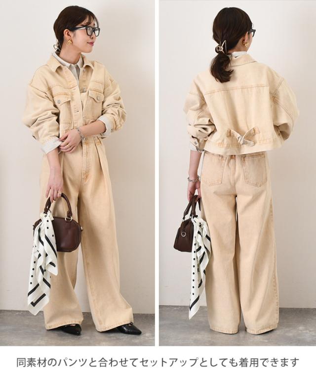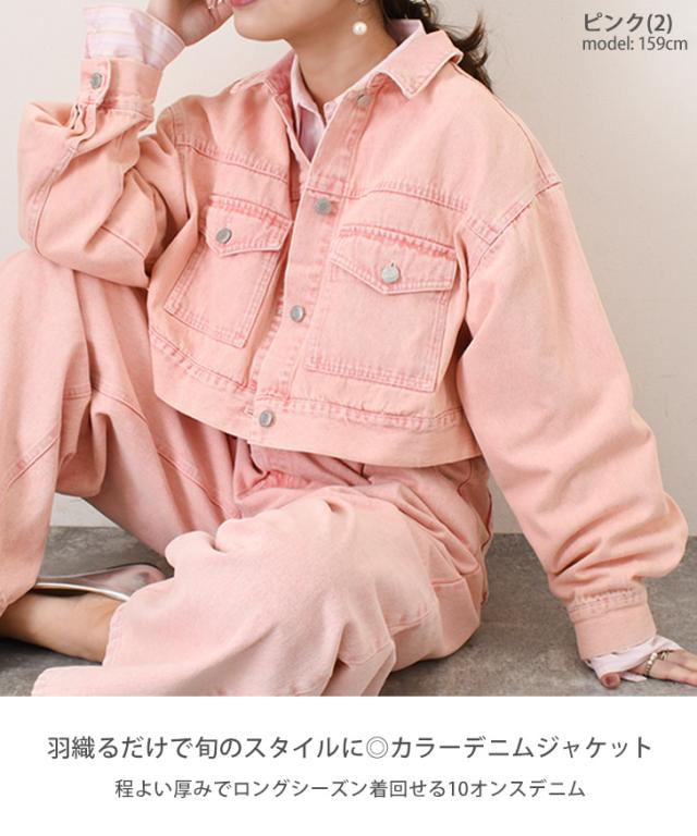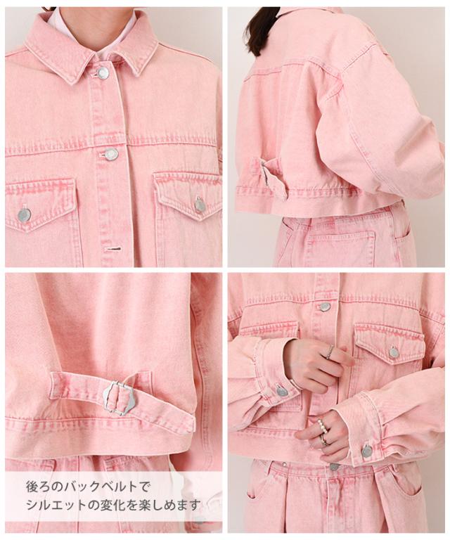 新作 胸ポケットバックベルトデザイン10オンスカラーデニムショート丈ジャケット レディース アウター セットアップ 単品 上だけ 春 秋 羽織り 上着 ジージャン Gジャン 長袖 大きいサイズ ゆったり おしゃれ