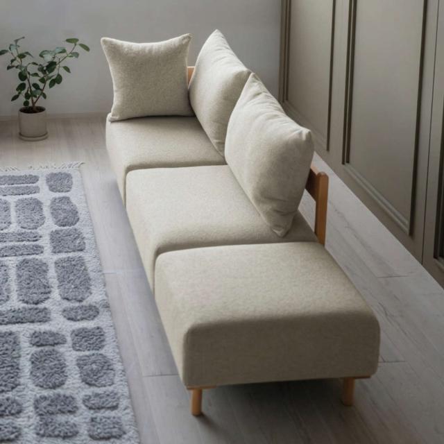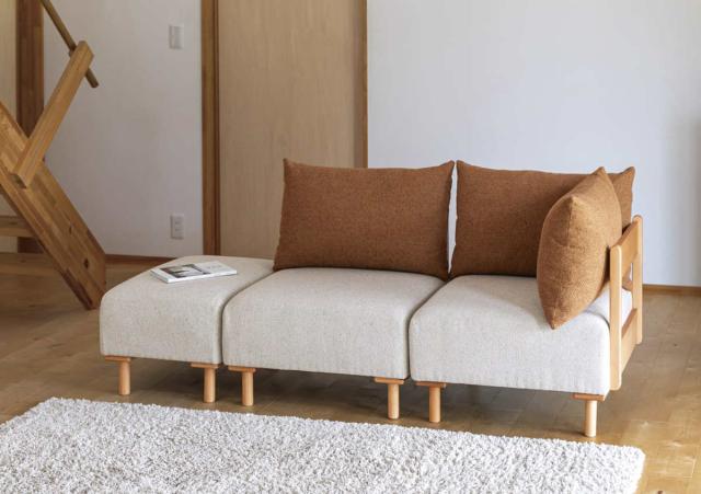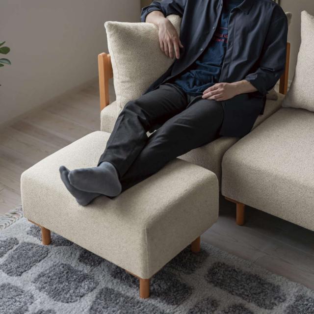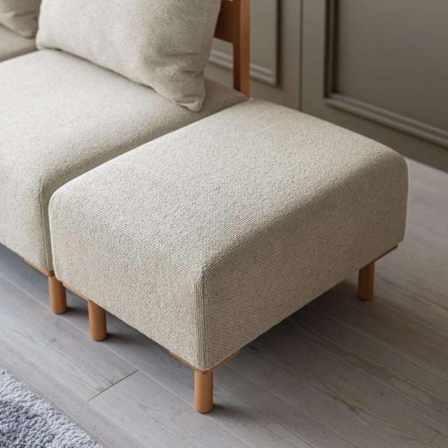 暮らしに合わせてシリーズで自由な組み合わせができるソファシリーズのオットマンです。脚部に天然木ビーチ材を使用したデザインは、どこか懐かしさと新鮮な印象を与えます。