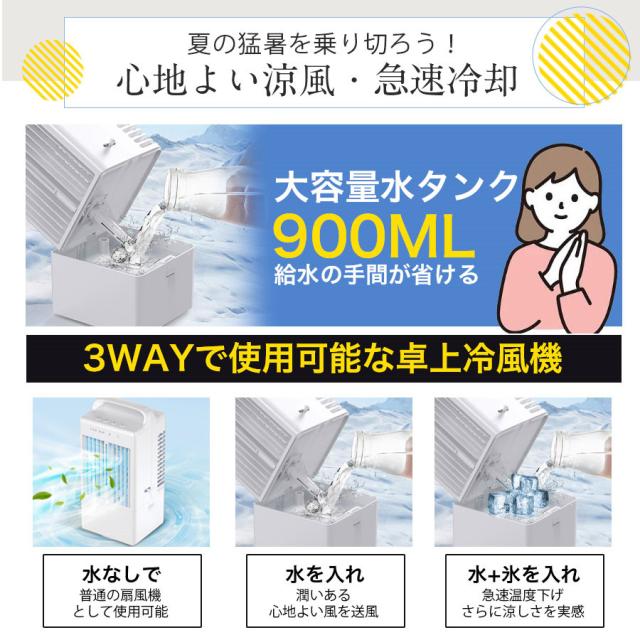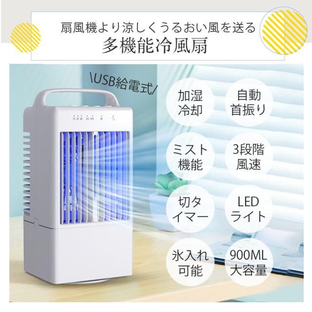 冷風機 冷風扇 扇風機 省エネ 氷 冷却 加湿 静音 自動首振り 900ML大容量 USB給電 切タイマー 暑さ対策 卓上 扇風機