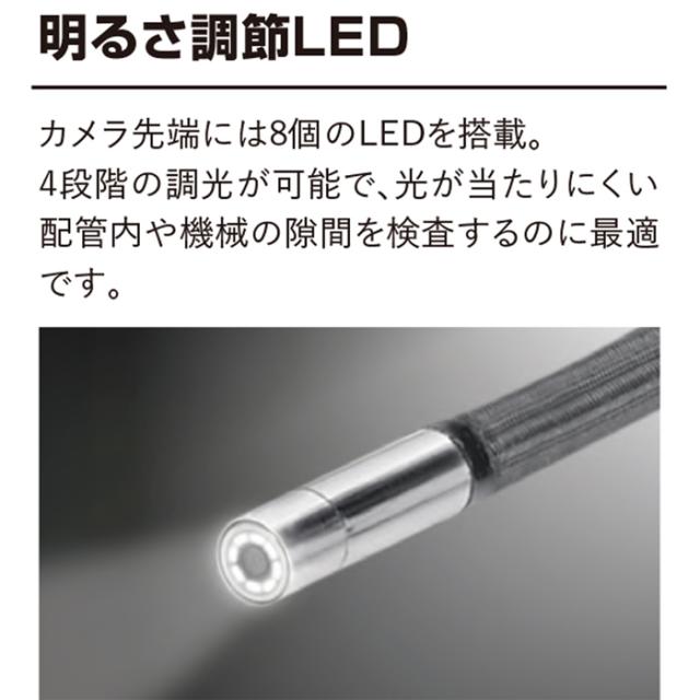 直径6mm、長さ2m、IP67の防水(海水対応)・耐油ケーブルの先端には8つのLEDを搭載しており、マグネットホルダーマウント付きで磁性体に本体を設置が可能です。